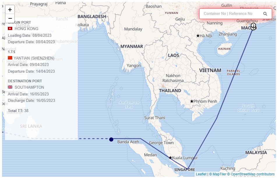 我選擇將貨箱寄到白禮頓,碼頭和倫敦一樣都是Southampton,預計五月十五日到達。此時,大家便可每天登入七海網站查看運送進度。